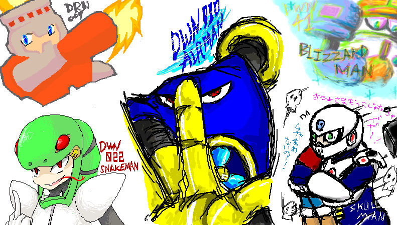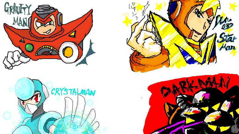 メガマン話もやばかったなぁ~、唯一描けるメガマンはスネークとメタルとマグネット、クラッシュだけだと思う。後は酷すぎて描く気が起こらない・・・ジェミニは明らかおっさんだろ。スパークは中に人絶対居るっ!!!!タップマンはかっこよかった。あだ名は「タッピー」。現にロールに、「タッピーって呼んでくれ」って言ってたと思う(何処かで見たことあるけど何処か忘れた)