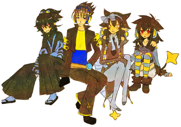 娘僕企画でうちのライガを行かせたんですけども、なんと!奈津芽様が他者の可愛らしい(かっこいい)お子さん達と共にライガを描いて下さいました。見た時は「おぉ~、イケメンになったなぁ。おぃ」(親父か)って言ってしまった位素敵でした。他者のお子様も可愛らしい服を着ていますねぇ~・・・うちはシンプルですが。右のお二人がが女の子で左の二人が男の子です。