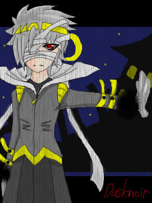 左目は生まれてくる時に兄が左目でヨノルが右目になった。世間で言う双子。戦闘の時は足が元の形に戻り、服のチャックを下げ前を空けている。髪の毛は後ろで束ねているが、長くは無い。