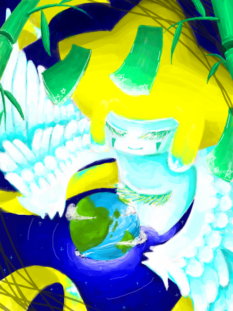 背景はなるべく彼女に似合う色と直線でハッサムの良さを表しました。