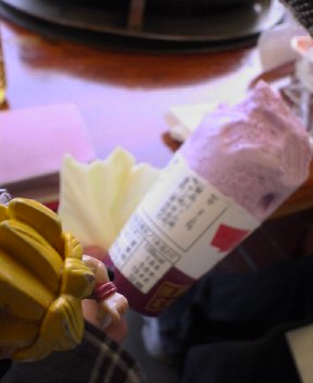 写真はその時のもの。アイスOKだったので紫いもを購入。Tちゃんもこれを気に入ってくれました^^ そして、キャベツが余っていた(他生徒の残り)のでキャベツをかじりながらアイス・・・意外と上手かったですよ~ アイスの甘味とキャベツのシャキシャキ感が良かったです(栄養も取れるしね)