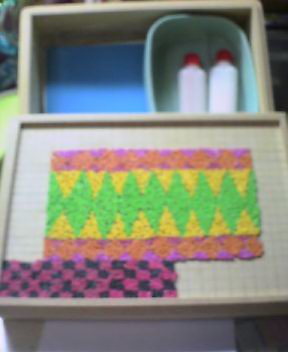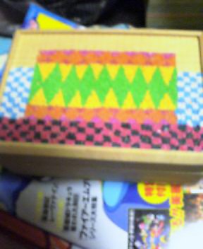 後は上に白青足して、上の横列をまた赤黒で染めていくんですが・・・果てしなく目に悪い色です。