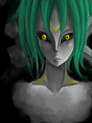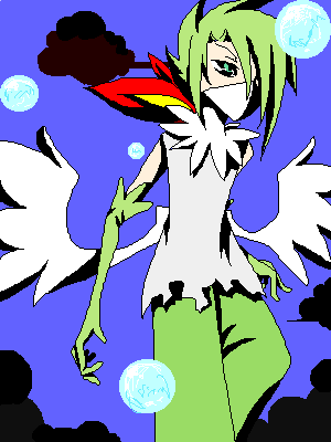 最初は色違いレックウザだったに、さすがにモノクロは駄目だろうと思い普通の方の髪の色。両目とも大きさが違うんだぜ~・・・失敗した。