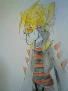 ノクターンの水彩ミスった。ズボンと髪と服の袖がぁぁぁぁ!!!ドラゴ○ボールの敵サ○ヤ人がつけてるスカ○ターみたくなった所があるよぉ;д;)