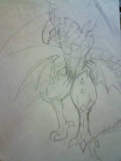 ポケモン以外の絵を描こうと思い、男友達に「遊戯王でなんか描かせて~」っと頼んだらOKくれました。うちの学校では今人気なんでちょろいぜ。そこでドラゴン系を描いていたら後ろの奴も「俺も描いてほし~」みたいな事言い出してそこから大変だ~。何枚描いたかな?6枚描いたよ・・・確か。その後、あげたけど。そこから脳内妄想爆発!!私も、資料はさっき描いた物を思い浮かべてドラゴン描いてました。